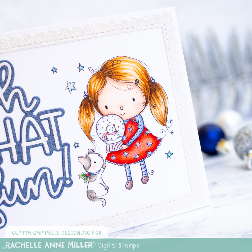 I have a Christmas card to share today, using the adorable Kitty Snowglobe digital stamp from Rachelle Anne Miller.