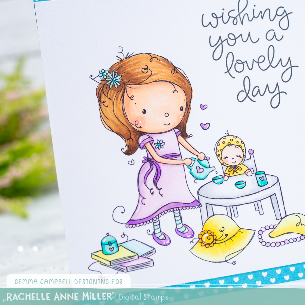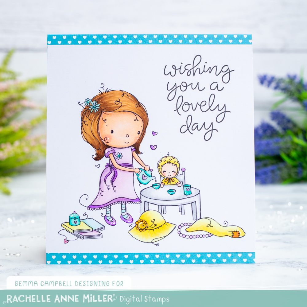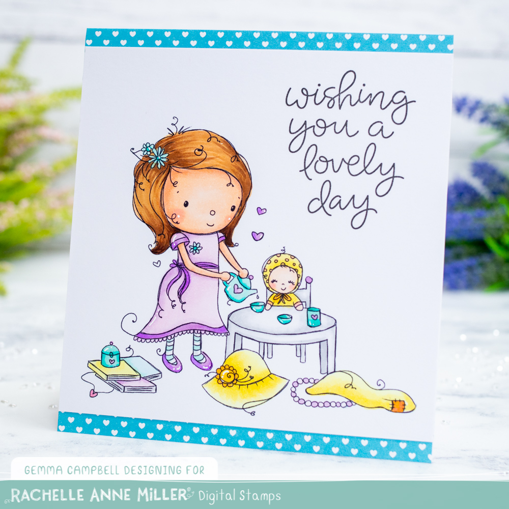 Today I’m sharing a card featuring a newly released digi stamp from Rachelle Anne Miller. This High Tea image is part of the February digi release available now!