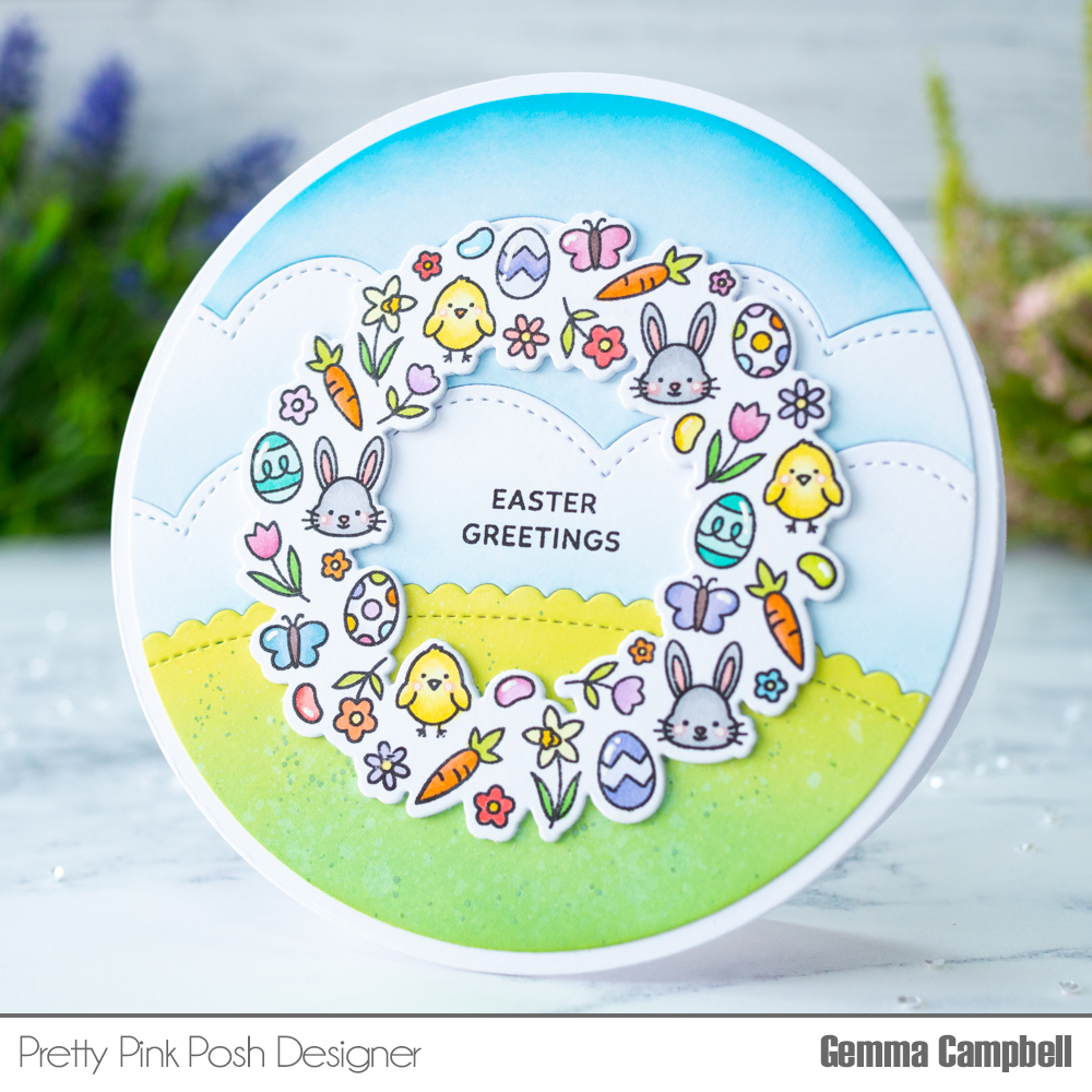 My circle card features the new Easter Wreath stamp set, which is the latest in the wreath collection by Pretty Pink Posh.