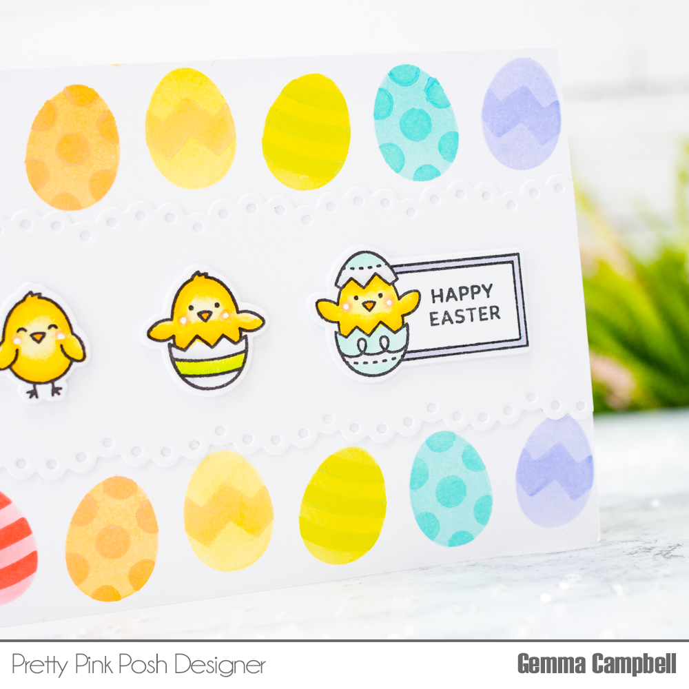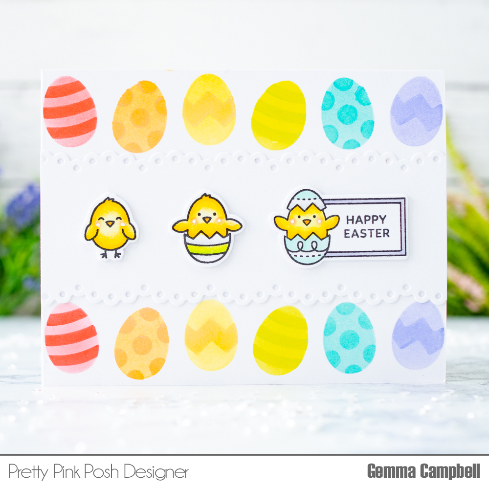 I have an Easter card to share today, featuring the Pretty Pink Posh Easter Signs stamp set and Layered Eggs stencil.