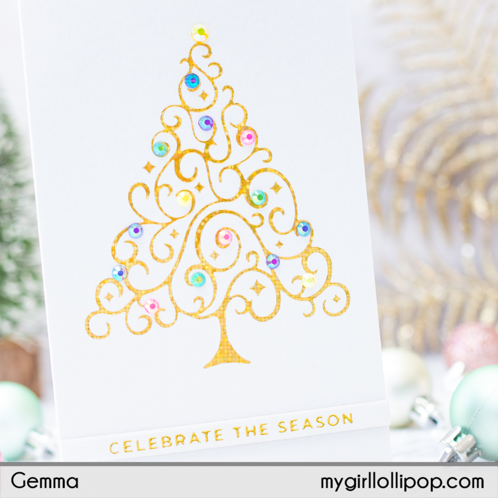 I’m using the Flourished Tree Glimmer set on my card today. Perfect for beautiful, quick and easy one layer Christmas cards, and great for mass producing.