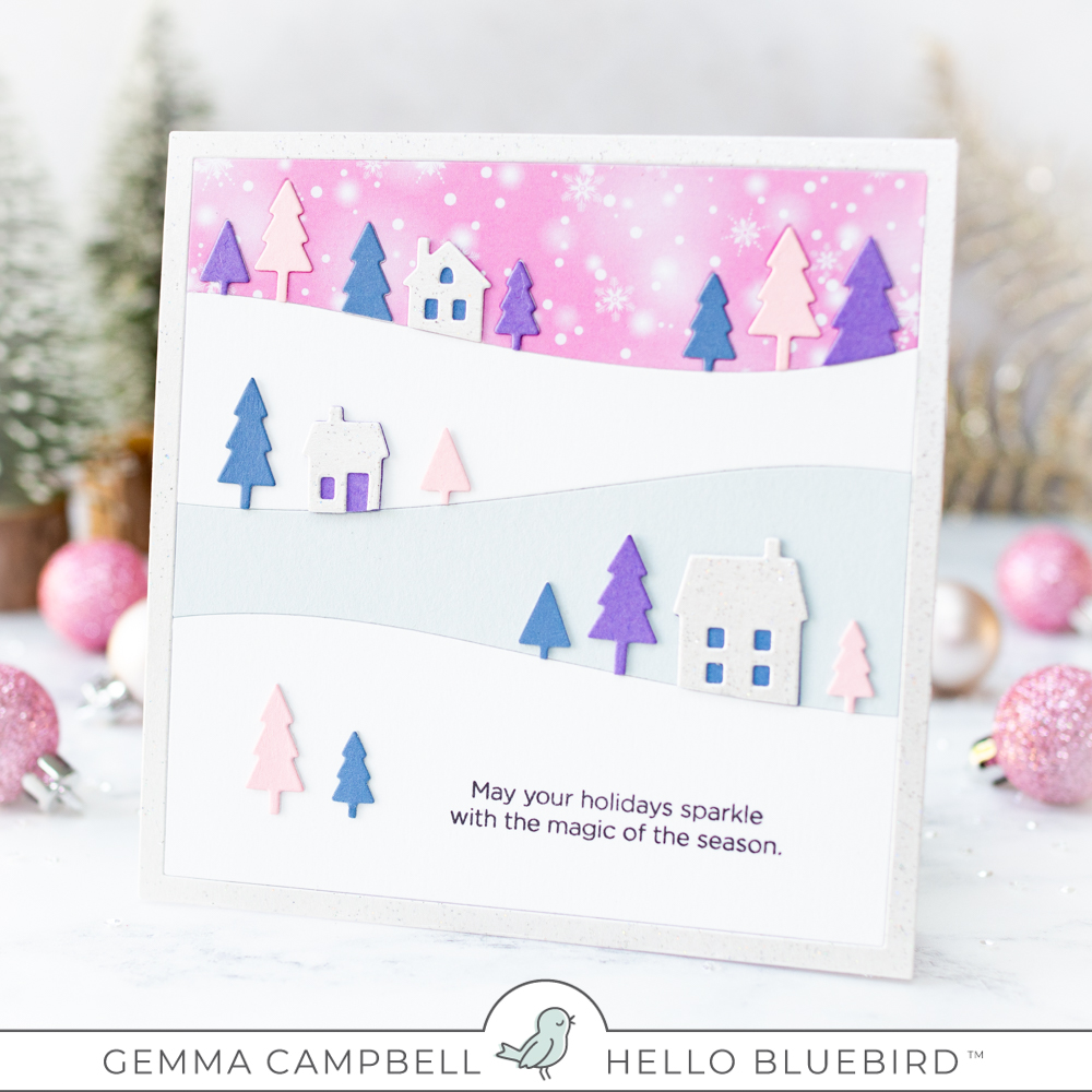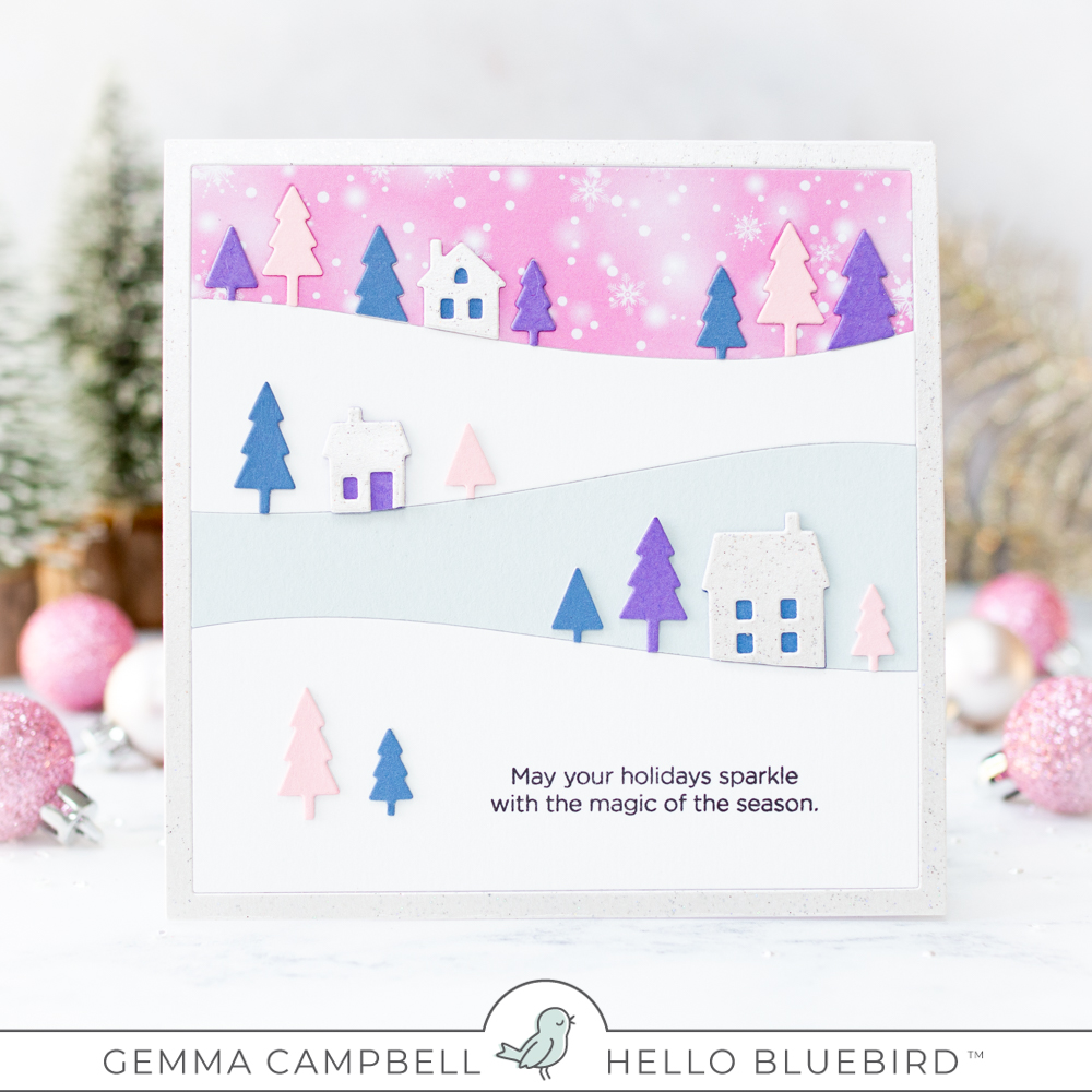 - Hello Bluebird Stand-alone Dies: Snowy Countryside Square Scene Die