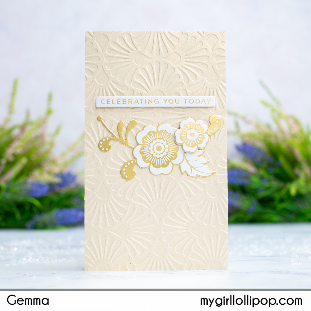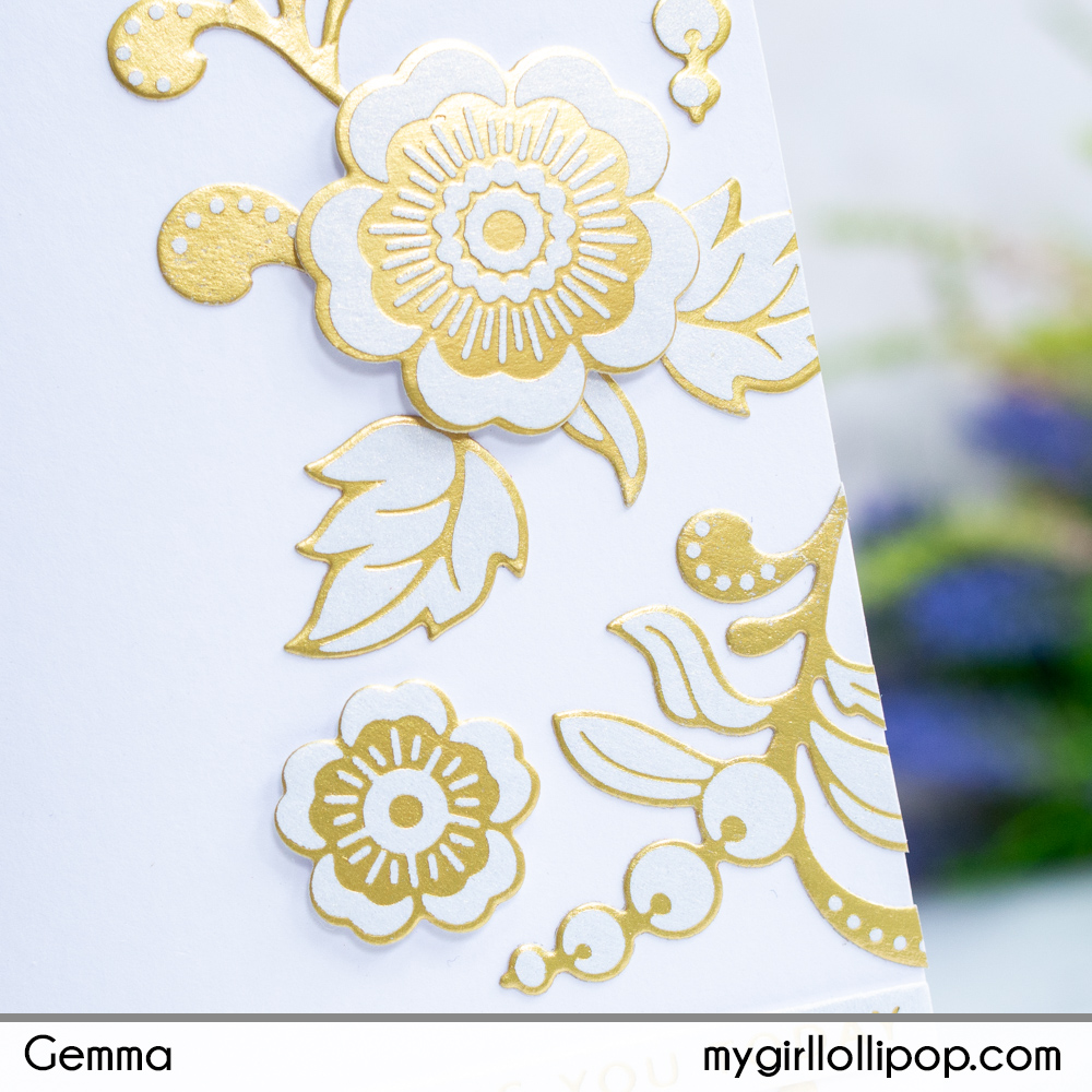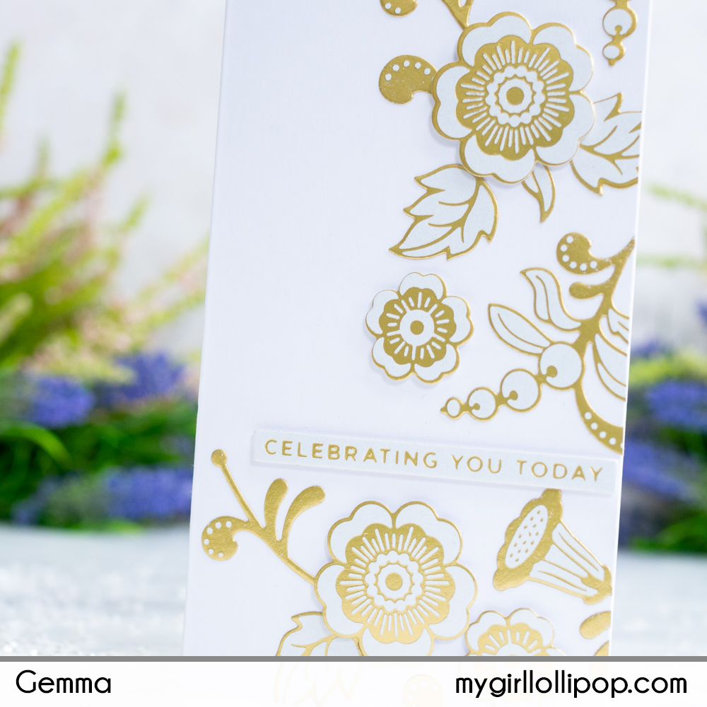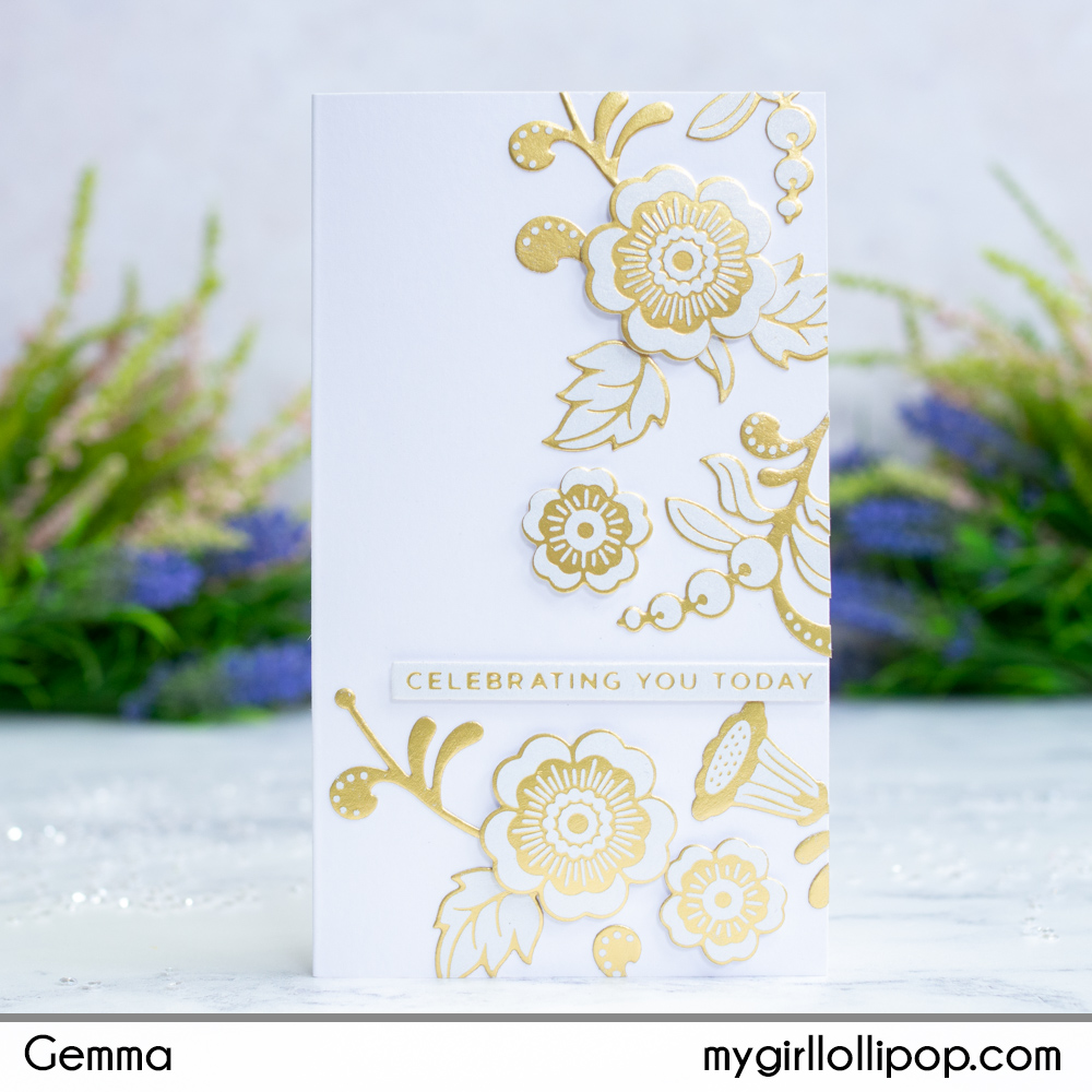 The clever hot foil plate means you foil all the florals and sentiment in one pass, with the coordinating die then cutting them all out at the same time. This is such a time saver.