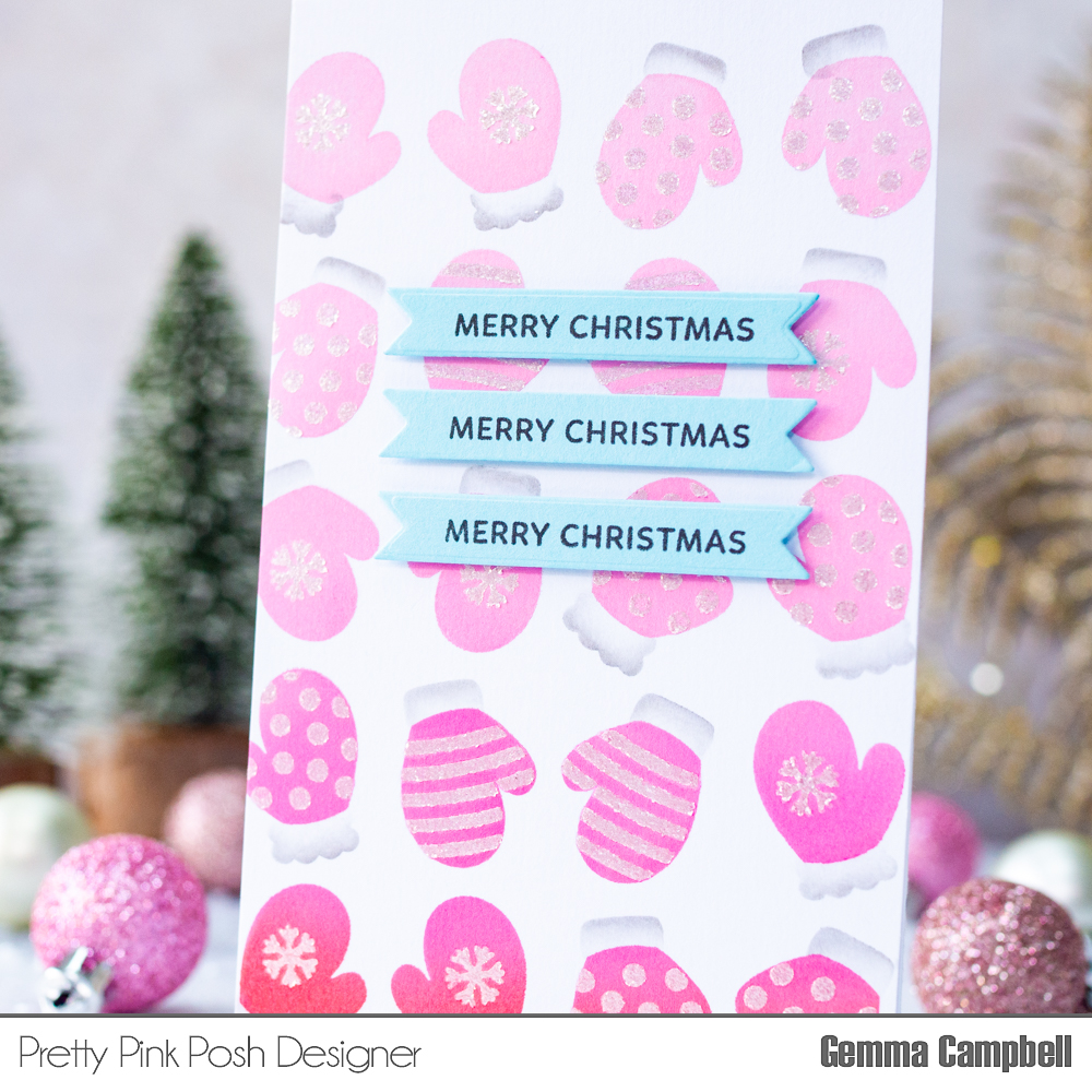 The Pretty Pink Posh Layered Mittens stencil set makes it easy to create a fun Christmas card.