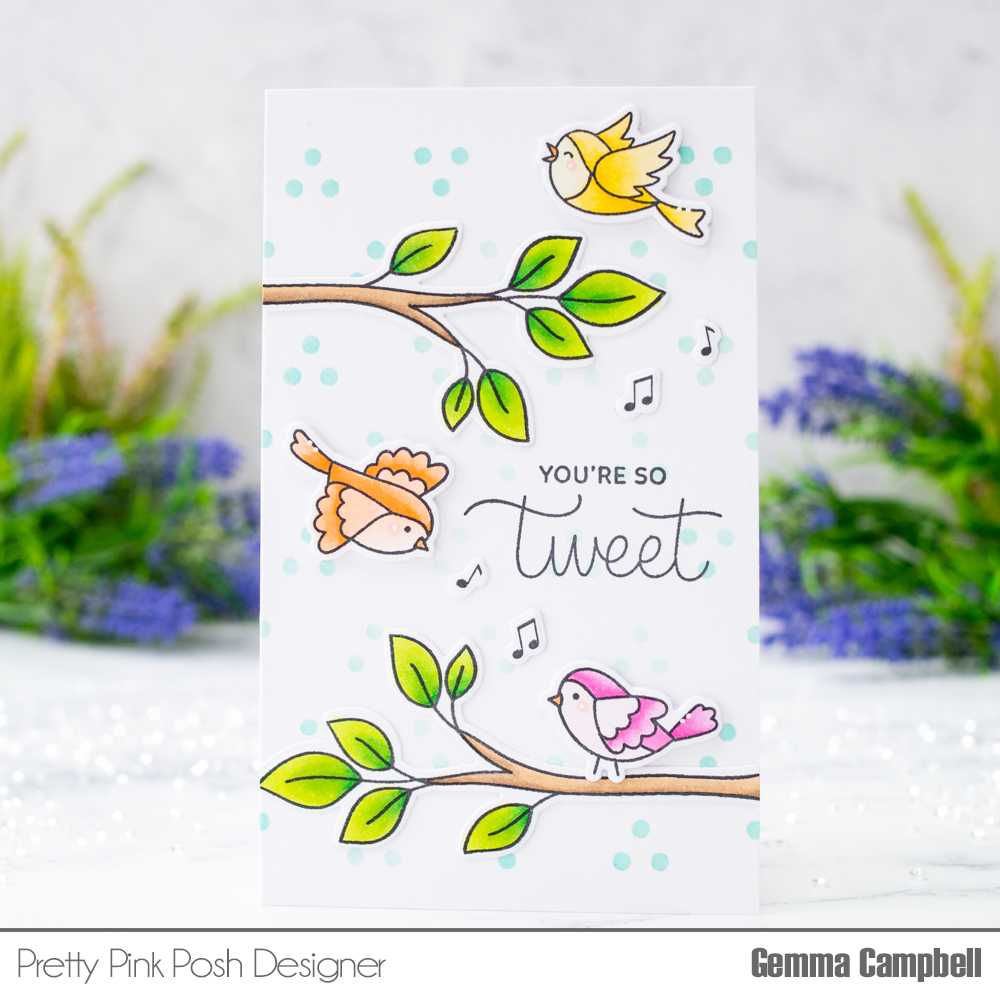 My card today features the new A Little Birdie and Spring Birdhouses stamp sets from Pretty Pink Posh.