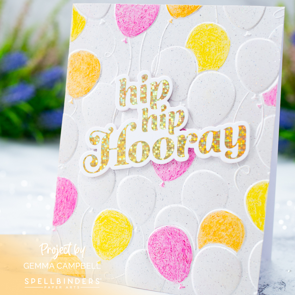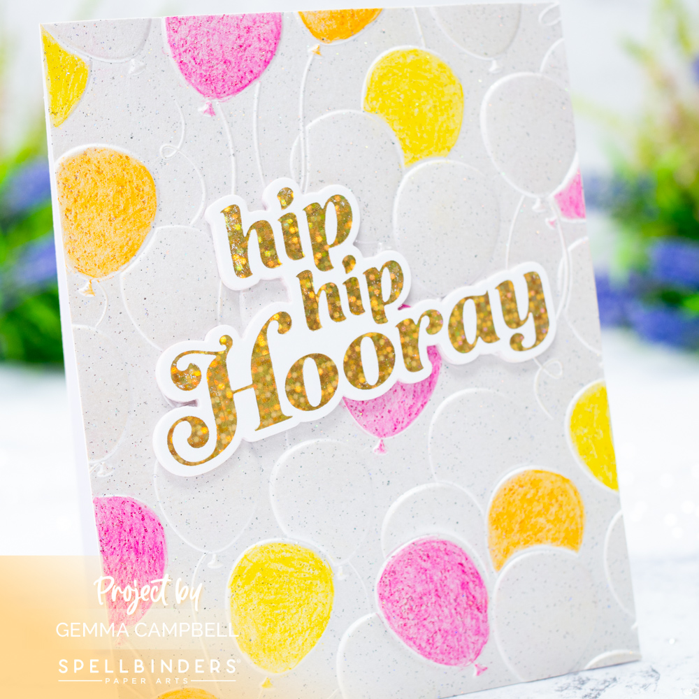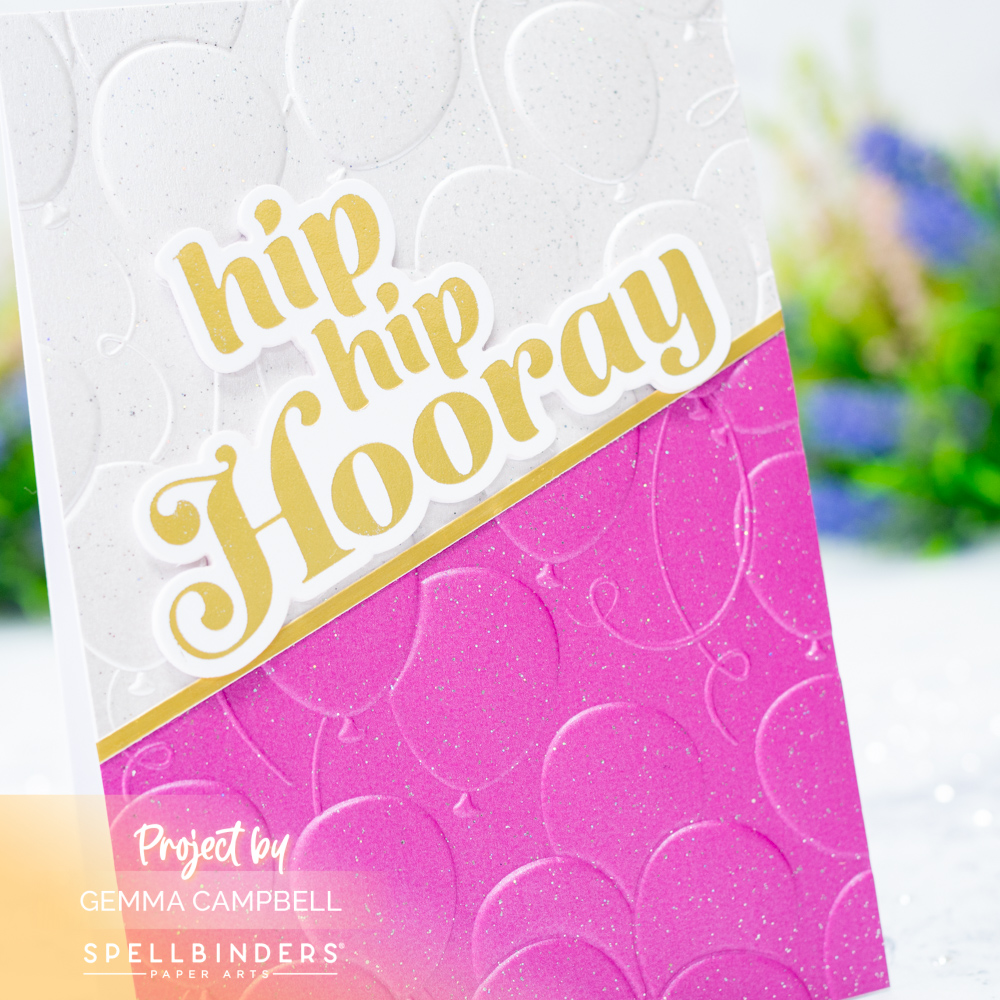 I’m using the Glimmering Hooray set and the Floating Balloons embossing folder on my cards today.