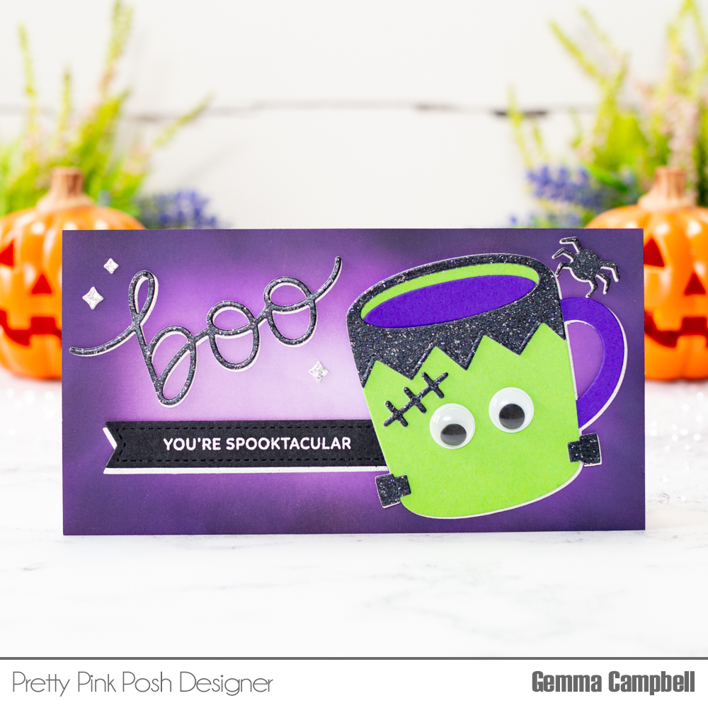 LOVE the purple blending for the background of this card! The green mug looks spooktacular! 🙂