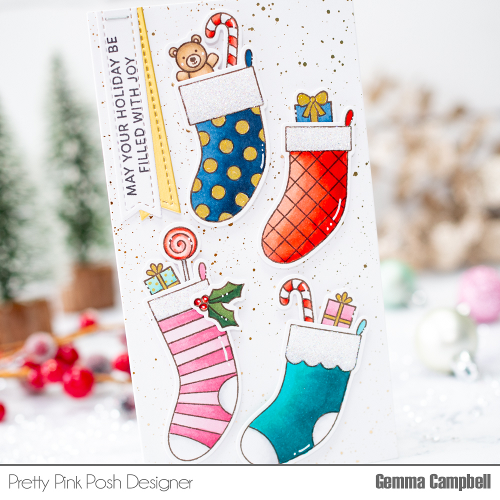 Today I have a card to share featuring the new Holiday Stockings stamp set from Pretty Pink Posh.
