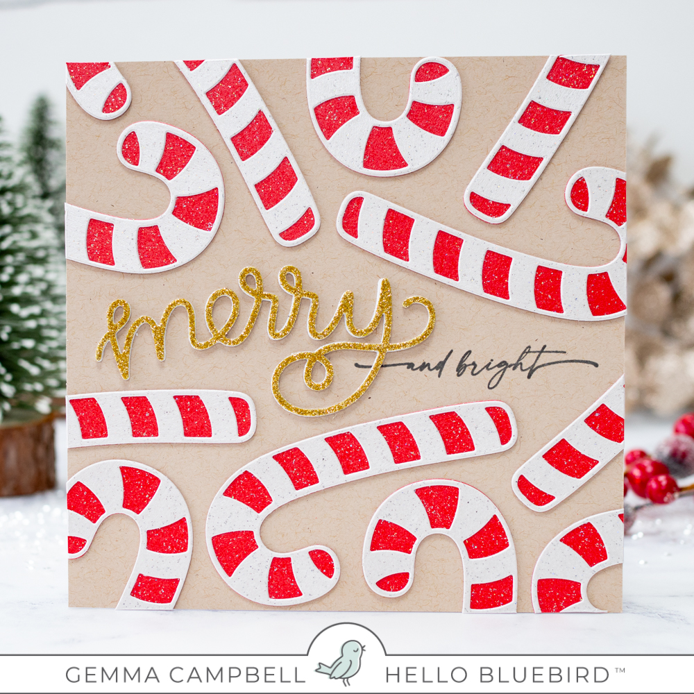 Join me on the Hello Bluebird blog today, where I’m sharing a holiday card with the new Candy Cane Lane die set. I love the large candy cane in this set and it works great as a background pattern.