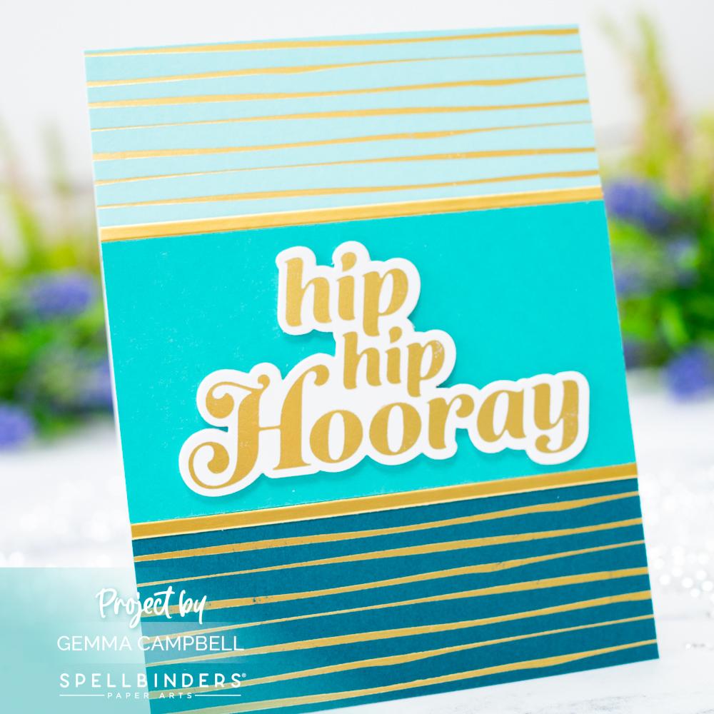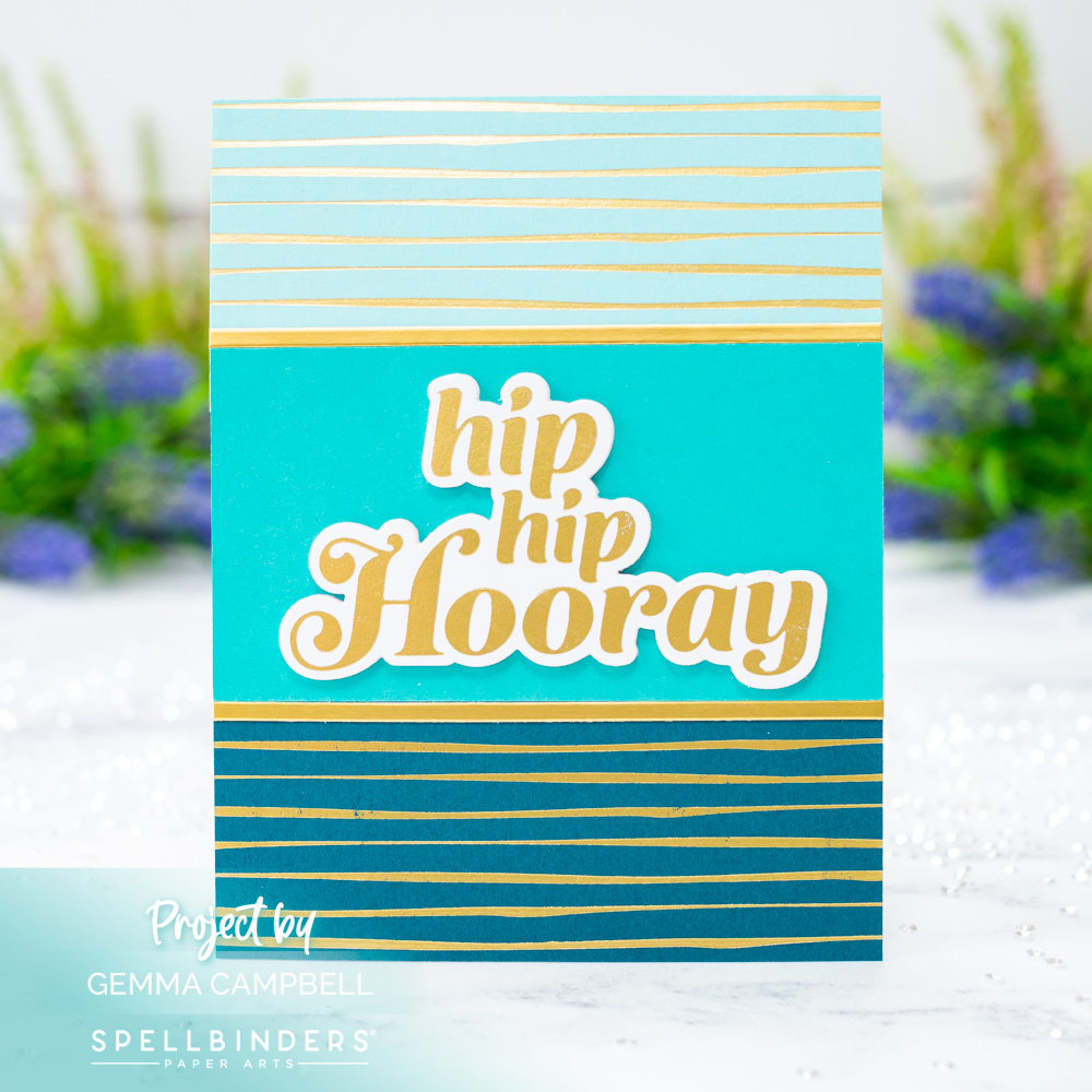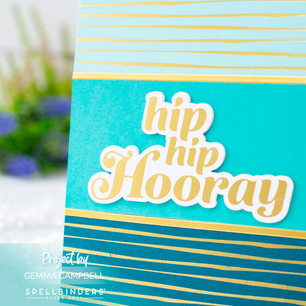 I added a matte gold foiled sentiment from a previously released Spellbinders set. I added some layers behind the sentiment for dimension.