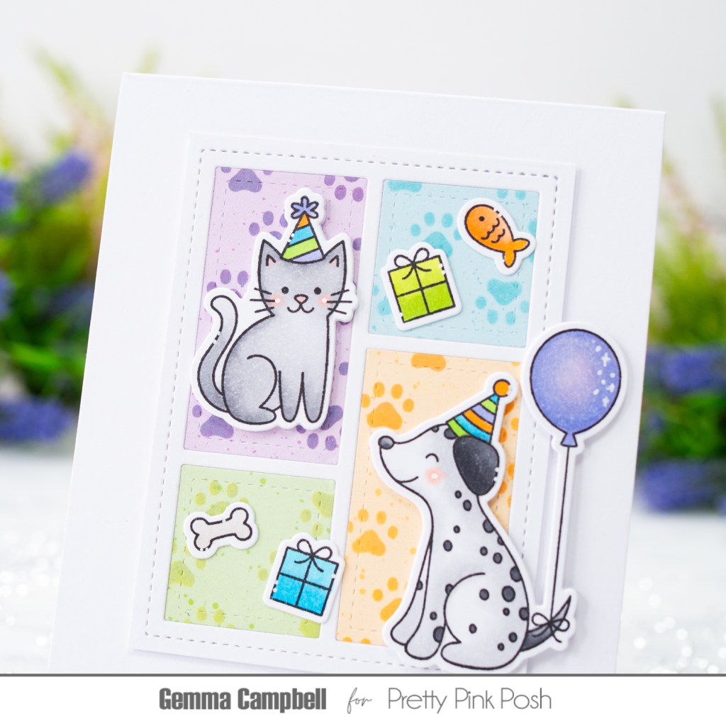 My card features the new Birthday Dogs & Cats stamp set and Paw Prints stencil.