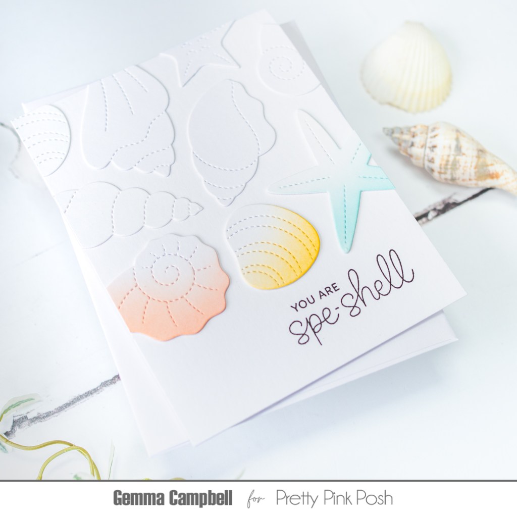 My card today features the new Stitched Seashells from Pretty Pink Posh, along with a sentiment from the new Seashells stamp set.