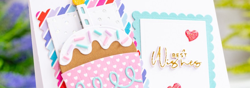 Today I’m sharing a card made with products from the Spellbinders Sweet Street Collection. This fun collection has an assortment of cakes, cookies and more! I’ve used the Party Cupcake Pocket and the Sweet Treat Box die sets on my card. I began by die cutting the pieces for my cupcake. I die cut two… Continue reading Spellbinders Sweet Street Collection