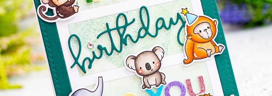 Today I'm sharing a card featuring a few new products from the Hello Bluebird May 2021 release. I die cut the new Gallery #6 die from white and pearlescent green card. The Gallery frames are great as they cut the pieces individually, so you can use the inner or outer frame alone or together. On… Continue reading Hello Bluebird Word Buddies Jungle