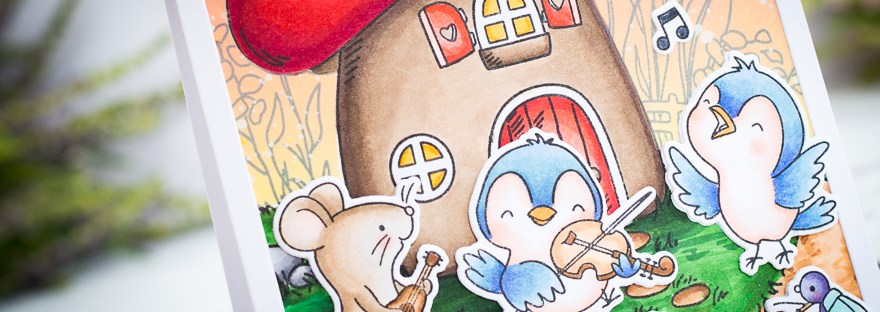 Join me on the Hello Bluebird blog today, where I’m showcasing the brand new Mushroom House background stamp. This background is such fun and works really well with a host of different Hello Bluebird stamp sets.