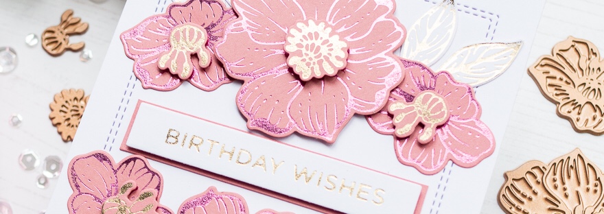 Today I’m sharing a card made with the Spellbinders June 2019 Glimmer Hot Foil kit. This month's set is called 'Radiant Flowers'. Included in the kit is 6 glimmer plates and 6 coordinating dies, plus a roll of Pink foil. I love when the kit includes the dies as I think it makes it even… Continue reading Spellbinders June 2019 Glimmer Hot Foil Kit
