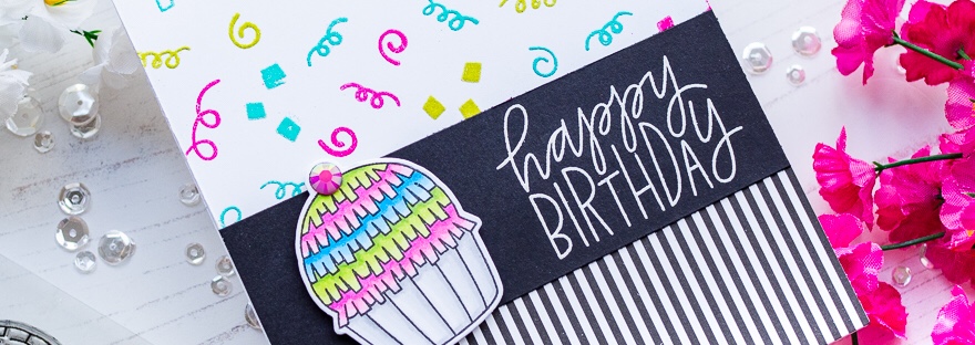 Today I have a fun and bright birthday card to share, using Pretty Pink Posh stamps and some embossing powders from WOW. I decorated the background of the card with confetti images from the Pretty Pink Posh Pinata Party stamp set. I stamped the images with WOW embossing ink, then heat embossed them with the… Continue reading Pinata Cupcake