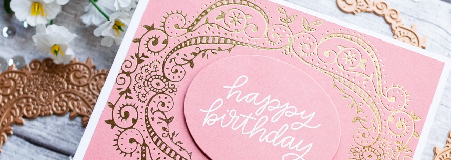 Today I’m sharing a card made with the Spellbinders May 2019 Glimmer Hot Foil kit. This month, you get a large elegant oval glimmer plate, which fits a standard A2 card base. Also included is an oval die which fits the middle of the large plate, along with two glimmer plate swirls and a die… Continue reading Spellbinders May 2019 Glimmer Hot Foil Kit
