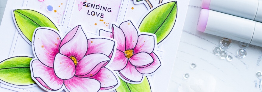 Today I have a card showcasing the beautiful new Magnolia Flowers stamp set from Pretty Pink Posh. I love the PPP floral sets as they are always lovely to colour and work with many different styles. I coloured my Magnolia Flowers images with copic markers, then die cut using the coordinating dies. For the background,… Continue reading Pretty Pink Posh Magnolia Flowers