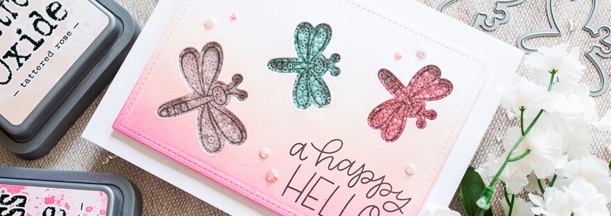 It’s the Pretty Pink Posh June release day today! All the sets are now available in the store, individually and as bundles. I'm sharing a card featuring lots of lovely new June release products. I began by inking a panel of cardstock with tattered rose and picked raspberry distress oxide inks. I cut the panel… Continue reading Dragonfly Seed Bead Shaker
