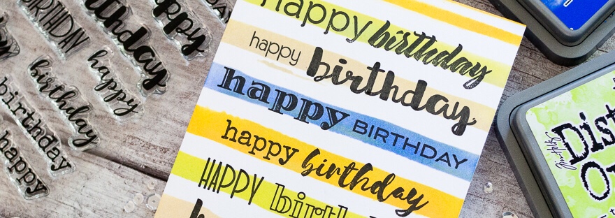 Today I’m sharing a quick and simple birthday card. The Altenew Birthday Builder stamp set is a favourite of mine. I love the variety of fonts in this set, which give so many possibilities. I thought it would be fun to use lots of them on a card. To create a place for the sentiments… Continue reading Happy Birthday Stripes