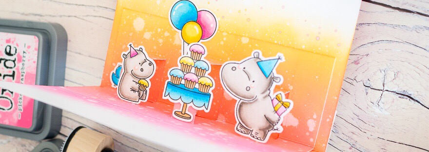 Today I'm sharing my last entry in the MFT Card Design Superstar competition. This is for the Innovation Master category. I decided to make a pop up card with a party theme. These hippos are having a great time! I used my new distress oxides to add colour to the card base on the front… Continue reading Innovation Master – MFT Card Design Superstar 2017 Competition