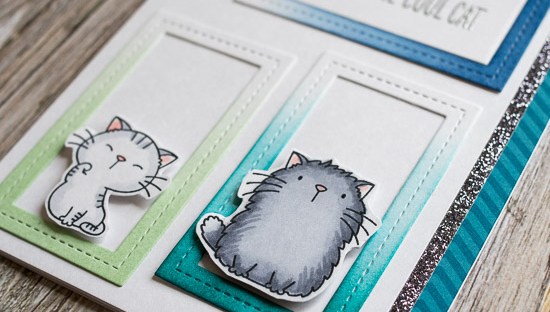 I'm combining both the MFT challenges with my card today. I stamped three images from the MFT Cool Cat stamp set, and coloured them with copics. I used greys to match the colour challenge. Next, I die cut three MFT stitched rectangle frames. I blended on colours from the colour challenge, fading to white for an… Continue reading MFT Sketch Challenge 317