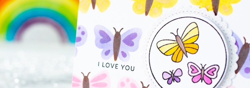 My card today features the beautiful Layered Butterflies stencil set from Pretty Pink Posh. I love these layering stencils for making quick and simple backgrounds, which look amazing. I teamed the stencil with an image from the Spring Circles stamp set. I layered the image over a glitter scalloped circle, from the Valentine Circles coordinating… Continue reading Layered Butterflies