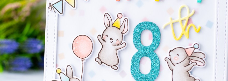 Today I’m sharing a Hoppy 8th Birthday card, featuring sweet bunnies from the Hello Bluebird Oh Happy Day and Cake Time stamp sets. I created my sentiment using various Hello Bluebird alpha and word die sets. The ‘th’ is from the ‘thanks’ word which comes with Gallery Frame #2. I coloured all my images with… Continue reading Hoppy 8th Birthday