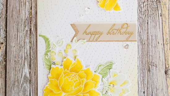 I'm joining in with two competitions with today's card. The Altenew June Inspiration Challenge, and the Seven Hills Crafts June Sketch Challenge. I began by heat embossing in white the outline images from the Altenew Peony Bouquet stamp set. I used yellow and green inks to stamp the rest of the layers, then die cut… Continue reading June Inspiration and Sketch Challenges