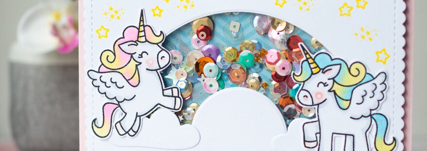 Today I have a shaker card to share, featuring the adorable Pegasus horses from Avery Elle. This is such a lovely set to colour, and the sentiments in the set are great too. I hope you'll join me on the Seven Hills Crafts blog today to read all about this card.