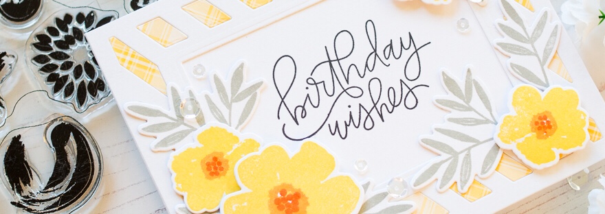 Spring is my favourite season. I look forward to the tree blossom and daffodils, and hopefully some warmer weather! My card today has a spring feel to it, with the sunshine yellows, complimented by a touch of soft grey. I began by stamping some flowers from the MFT Brushstroke Blooms stamp set. I used MFT… Continue reading Spring Brushstroke Blooms