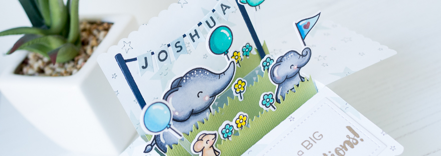 I created a sweet new baby card, using the elephant from Hello Bluebird Word Buddies Jungle stamp set. The custom die cut sentiment is created with the Jane Small Alphas. About this card Card base: 4.75” squareHello Bluebird Stamps: Word Buddies Jungle, Typed EverydayHello Bluebird Stand-alone Dies: Jane Small Alpha, Rainbow Sky, Galley Frame #1Patterned Papers:… Continue reading Baby Girl Word Buddies