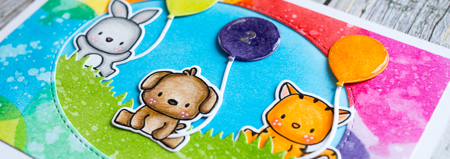 I have a riot of colour to share with you all today, with a child's 2nd birthday card. I love the MFT Big Balloon stencil for creating a background. By stencilling colour over each other, you can quickly cover a card with fun balloons. I added some distress detail with water too. I chose three… Continue reading Birthday Party Animals