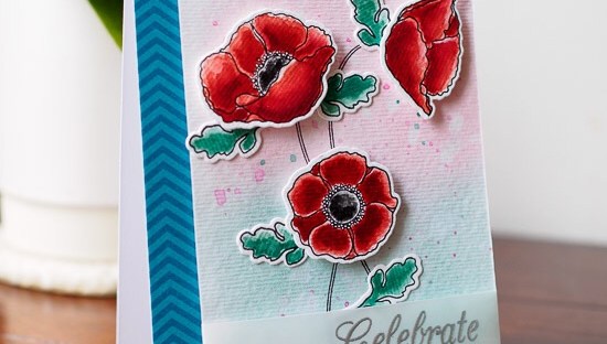 The new 'Delicate Poppies' stamp set from My Favourite Things is perfect for watercolouring and I couldn't wait to try it with my distress inks. How I made this card: I stamped the images in black pigment ink, then heat set them, so the ink wouldn't run when I started painting. I used distress ink… Continue reading Delicate Poppies