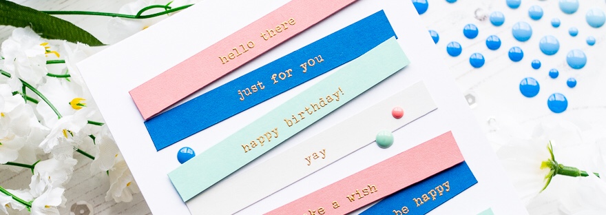 I really enjoy making cards with sentiments as the focus. The Hello Bluebird Typed Everyday stamp set has a fantastic font that works perfectly for this style of card. I chose four colours of Fun Stampers Journey cardstock - Huckleberry Fusion, Tin Pail, Rustic Rose and Cool Pool. I cut 1cm strips, then cut them… Continue reading Hello Bluebird Typed Everyday