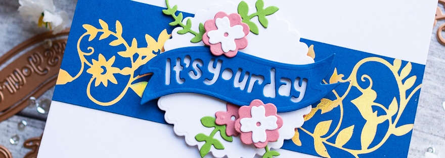 Today I’m sharing a card I made with the some *products from the Spellbinders Happy Collection by Sharyn Sowell. This sweet collection includes both dies and glimmer hot foil plates, which work well together or on their own. To begin, I used the Glimmer Hot Foil machine with the Vine glimmer plate and some beautiful… Continue reading Happy Collection by Sharyn Sowell