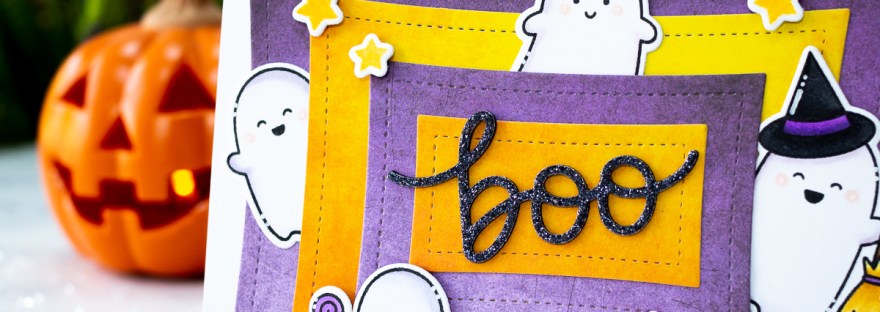 My project today is a fun and cute Halloween card, featuring the Pretty Pink Posh Ghost Friends and Wonky Stitched Rectangles. I die cut some patterned papers in contrasting colours, using the different sizes of the Wonky Stitched Rectangles. I layered these together and adhered to an A2 white card base. Next, I stamped and… Continue reading Boo from the Ghost Friends