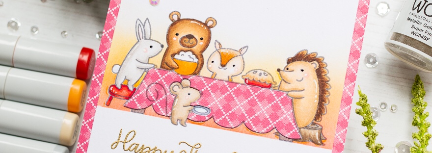 Today I have a card to share with the Pretty Pink Posh Thanksgiving Scene stamp set. This sweet scene is lovely to colour and makes creating a Thanksgiving card quick and easy. I stamped the image onto white card with Lawn Fawn River Rock ink, then cut a mask to cover it whilst I blended… Continue reading Pretty Pink Posh Thanksgiving Scene
