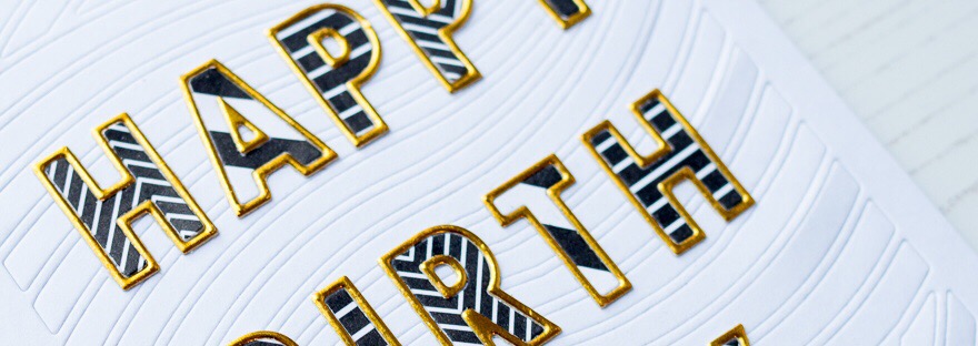 I'm sharing another typographic card today, featuring the Concord & 9th Double Cut Alphabet die set. I went for a striking colour combination of black and white with gold for this card, and ended up making several of them. I die cut the letters for 'happy birthday' from the MFT Black and White basics paper… Continue reading Big, Bold, and Gold Happy Birthday