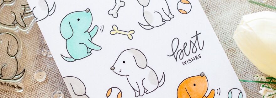 I'm a big fan of patterns and prints, especially when they use cute critters. It can be a great way to use different colours not normally associated with animals. As the Playful Puppies stamp set from Pretty Pink Posh has dogs facing in both directions, it’s perfect for creating a pattern on a card. I… Continue reading Puppy Patterns