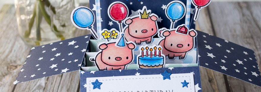 The Lawn Fawn box card die is so awesome! I'm having so much fun with it and knew I wanted to make my niece a birthday box card. She like pigs so I used the cute pig from the Mama Elephant Lunar Animals stamp set. I stamped and coloured three of them with colouring pencils.… Continue reading Three Little Pigs