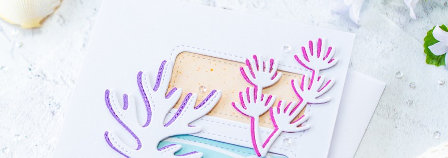 A look at the new Stitched Corals die set from the Pretty Pink Posh June release. I die cut three different corals in white, and added pops of colour behind each one. I layered the coral over the Stitched Pieces die set, which is an old favourite of mine. I added some fun seaside patterned… Continue reading Stitched Coral