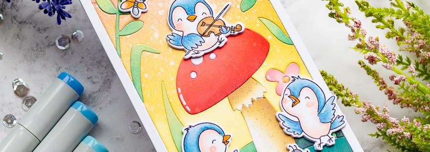Today I’m sharing a card featuring the fabulous new Fairy Glade Vertical slimline die from Hello Bluebird. Teamed with the Garden Party stamp set, it's easy to create fabulous scenes. I began by die cutting the Fairy Glade Vertical slimline die from Bristol Smooth card. On the main background, I blended an evening sky with distress… Continue reading Hello Bluebird Garden Party