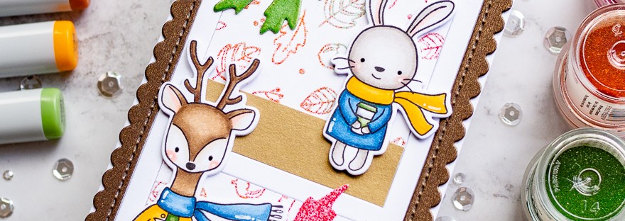 I've combined some older Hello Bluebird Autumn sets with the new Gallery Frame #5 slimline die on my card today. I began with the embossed background. I stamped the Blowing Leaves background stamp on white card with embossing ink. I then covered the panel with 3 different colours of WOW embossing powder - Apple Red,… Continue reading Fall Friends and Autumn Leaves