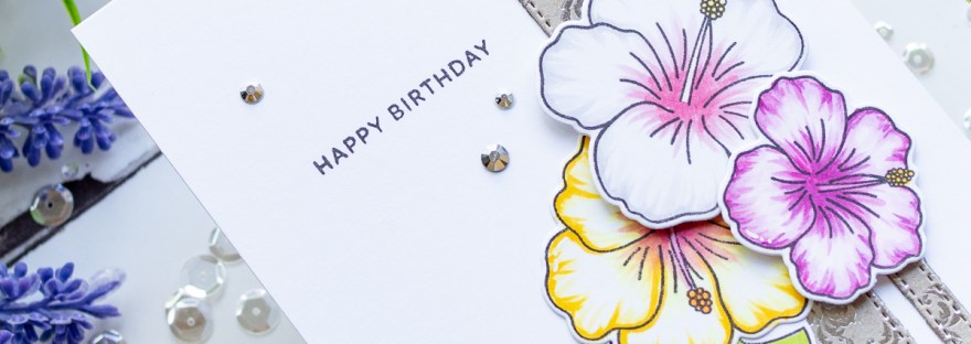 I’ve reached for my Pretty Pink Posh floral stamps for my card today. I love the Hibiscus stamp set - it makes me think of warm summers and tropical destinations. All my images are coloured with copics and cut out with the coordinating dies. I arranged them in a cluster, then used liquid glue to… Continue reading Hibiscus and Silver Damask