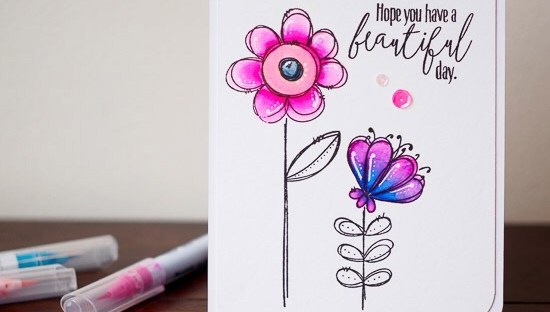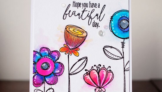 I love this doodle buds set! It's very versatile and really lends itself to different colouring techniques. This time I decided to go for a messy watercolour look. This was a quick and simple card to make. I stamped the images onto watercolour card with Versafine onyx black ink and set it aside to dry.… Continue reading Daily Marker Colouring Challenge: Doodle Buds
