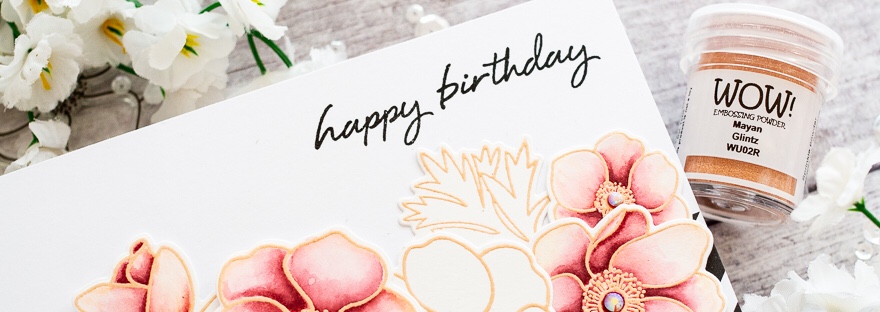 I’m sharing a pretty watercolour floral card on the WOW blog today. I used Mayan Glintz embossing powder with the Pretty Pink Posh Anemomes. I hope you’ll join me on their blog, where you can read more about how I made this card and the supplies I used. Don’t forget, you can save 10% on… Continue reading Watercolour Anemomes with WOW Glintz