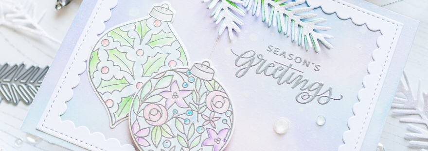 Today I’m sharing a card featuring some beautiful new products from the Pretty Pink Posh November release – Decorative Ornaments and Pine Sprigs. I wanted a soft wintery feel to this card, so I began by blending some distress oxides onto Bristol Smooth card. I used Spun Sugar, Tumbled Glass and Shaded Lilac. Once the… Continue reading Pretty Pink Posh Decorative Ornaments