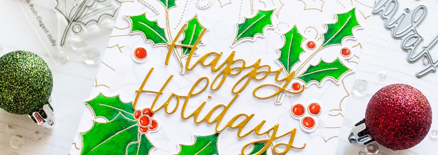 Today I’m using a gorgeous set from the November Pretty Pink Posh release called Elegant Holly. I love the details in this stamp set and thought it would be perfect for an embossed background. On a piece of white card, cut to the same size as my card base, I repeatedly stamped the images from… Continue reading Pretty Pink Posh Elegant Holly